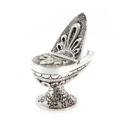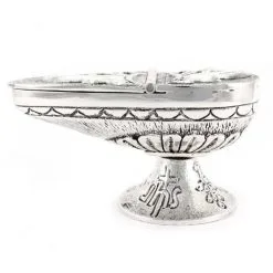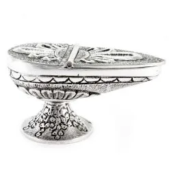 Navetta Tonda Per Incenso In Metallo Argentato 11,5 Cm