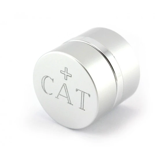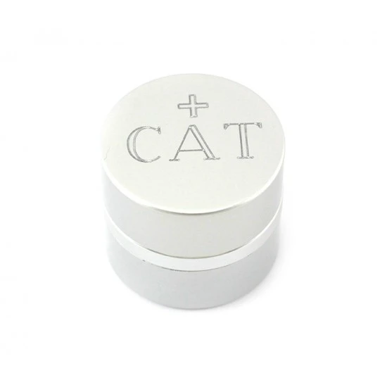 Vasetto per olio Santo Catecumeni realizzato in alluminio argentato. Il tappo è decorato da una crocetta incisa e la scritta CAT, ed ha un sistema di apertura sicuro e pratico con filettatura, svita e avvita. Made in Italy