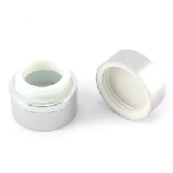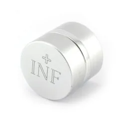 Vasetto per olio Santo Infermi realizzato in alluminio argentato. Il tappo è decorato da una crocetta incisa e la scritta INF, ed ha un sistema di apertura sicuro e pratico con filettatura, svita e avvita, fornito di astuccio in pelle. Made in Italy