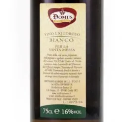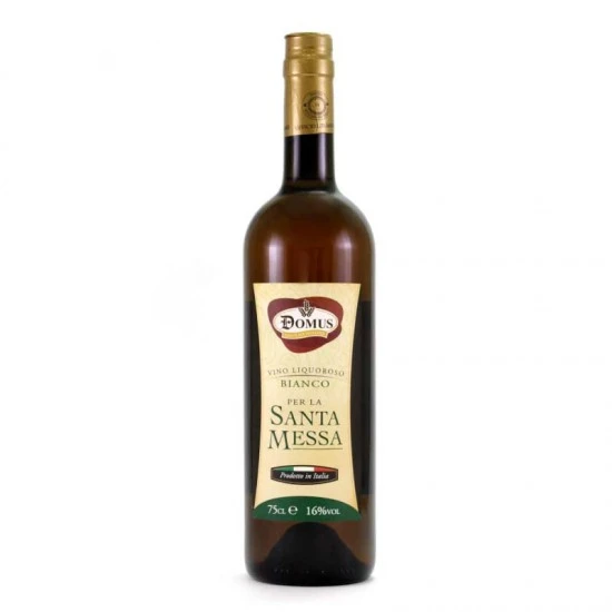 Vino bianco liquoroso per la Santa Messa, prodotto esclusivo dall’azienda Domus. Frutto della vite viene preparato, imbottigliato e sigillato secondo i dettami del Canone 924/&3 del codice di diritto Canonico sotto il controllo del Direttore dell’Ufficio Liturgico Diocesano di Mazara del Vallo. Made in Italy